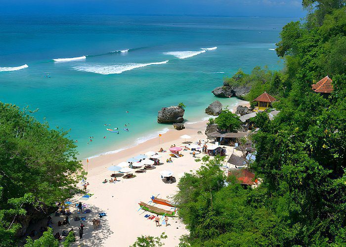 After your water sports session, enjoy a delicious local lunch and relax for a while before heading toward Padang-Padang Beach, a picturesque spot made famous by the movie Eat Pray Love. Stroll along the golden sands, swim in the crystal-clear water, or simply sunbathe under the tropical sky.